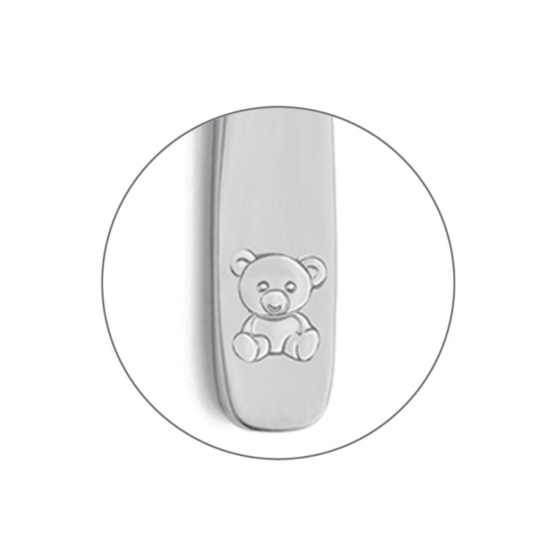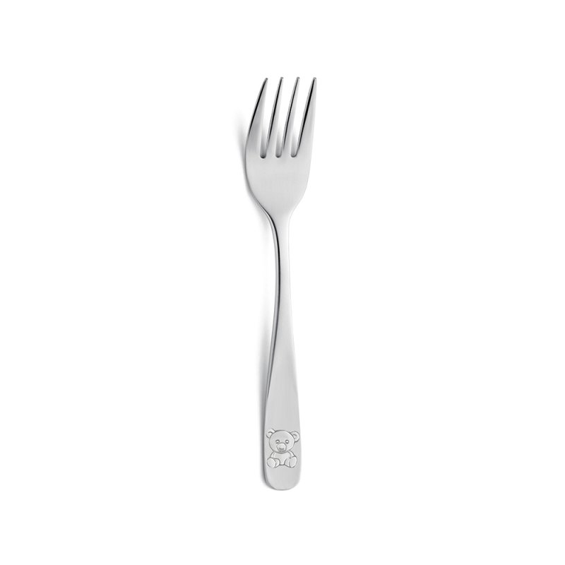 Fourchette de table pour enfants de la collection BEAR. Un ravissant petit ourson est gravé finement dans le manche....