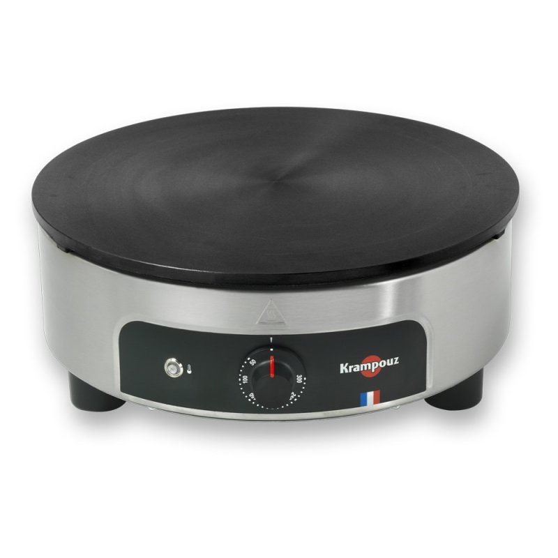 La crêpière électrique professionnelle Krampouz de la gamme Standard avec châssis rond, équipée d'une plaque en fonte usinée...