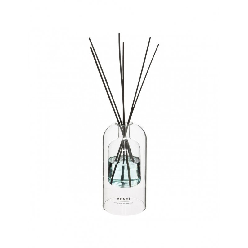 Ultra-graphique, ce diffuseur de parfum allie fragrance délicate et design original. L'accessoire ultime pour parfumer votre établissement. On adore les lignes épurées et les jeux de transparence de ce diffuseur de parfum. Le flacon en verre de 150 ml est livré avec 6 sticks pour 12 semaines de diffusion. Son parfum Monoï, aux notes solaires et florales, est une ôde au voyage et à l'évasion. Pour être accueilli par une signature olfactive, placez votre diffuseur dans votre entrée ou votre lobby.