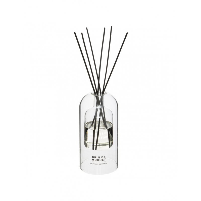 Ultra-graphique, ce diffuseur de parfum allie fragrance délicate et design original. L'accessoire ultime pour parfumer votre établissement. On adore les lignes épurées et les jeux de transparence de ce diffuseur de parfum. Le flacon en verre de 150 ml est livré avec 6 sticks pour 12 semaines de diffusion. Son parfum Brin de muguet inspire une escapade verte et florale un beau matin de printemps. Pour être accueilli par une signature olfactive, placez votre diffuseur dans votre entrée ou votre lobby.