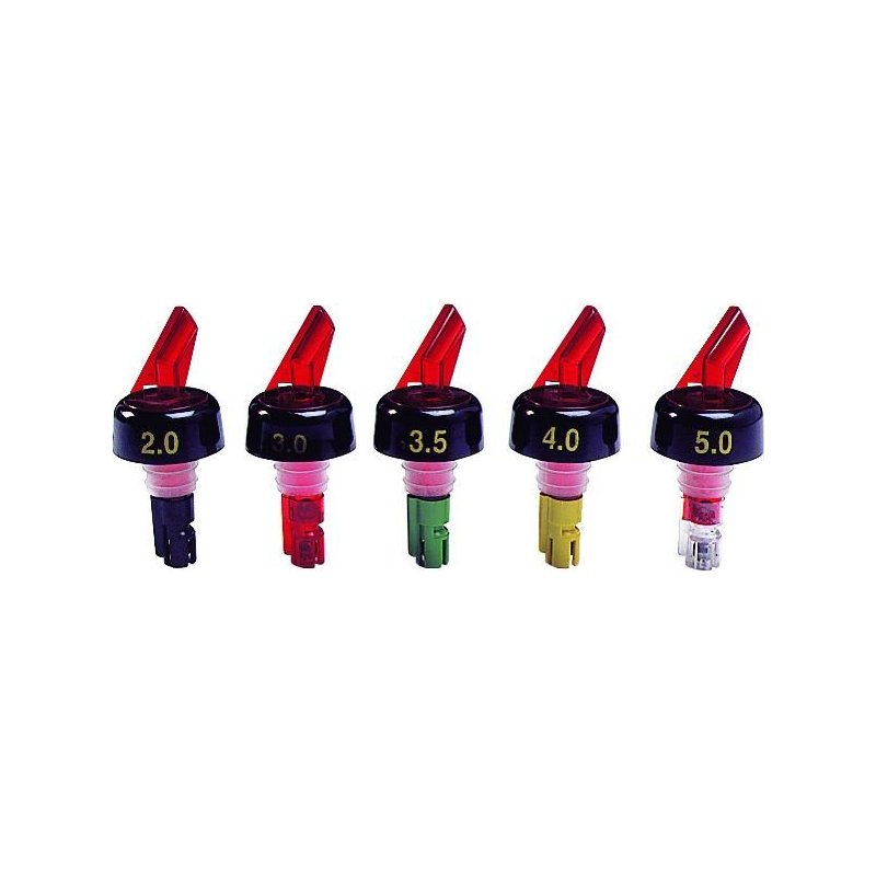 Doseur à billes idéal pour le dosage des alcools secs et whiskys. Bec transparent ou rouge, bague noire