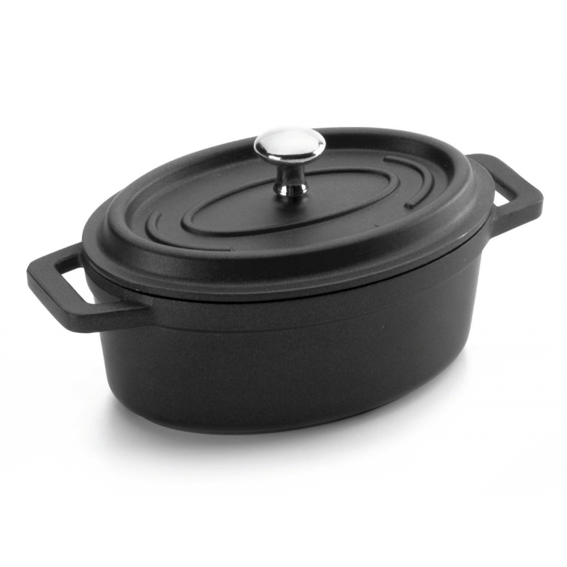 | Titre | Mini faitout ovale en fonte noir contenance 25 cl en 120 x 85 mm |