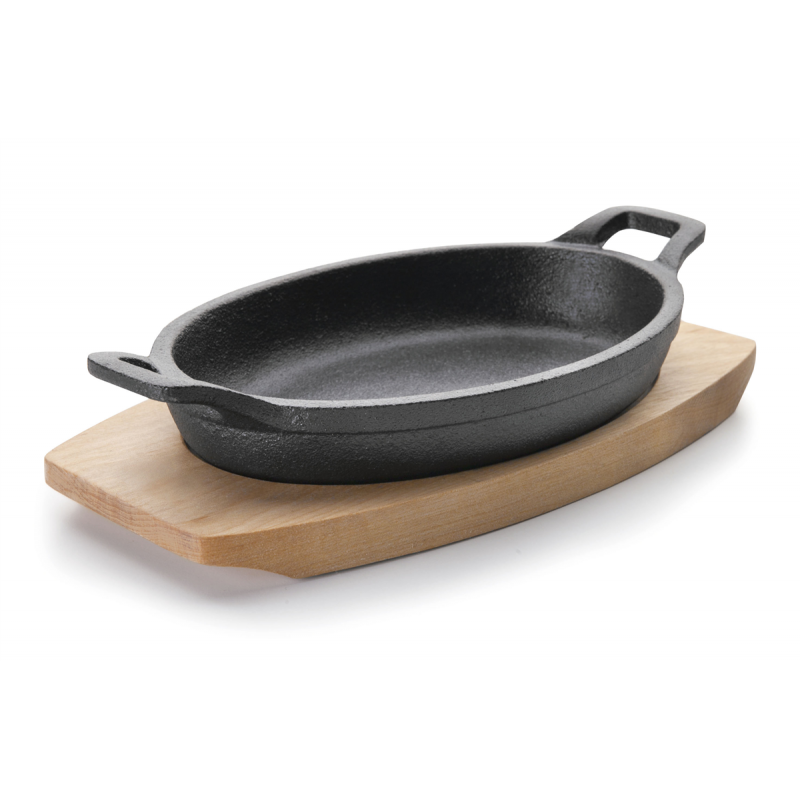 Le plat magma en fonte sur socle en bois oval offre une solution élégante pour la présentation de plats dans les restaurants. Avec ses dimensions de 17 x 12 cm, il convient parfaitement aux portions individuelles. La fonte garantit une distribution uniforme de la chaleur, tandis que le socle en bois ajoutera une touche rustique à votre présentation. Parfait pour les plats chauds ou froids, ce plat sera un ajout attrayant à votre table.