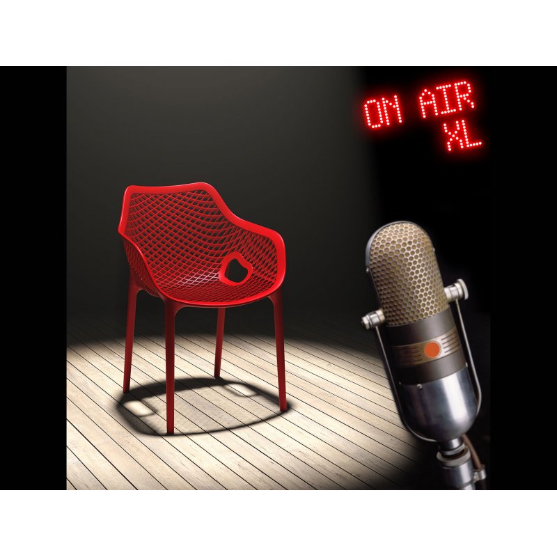 Le fauteuil AIR XL au look contemporain, est produit avec 1 seule injection de polypropylène renforcé de fibre de verre obtenu au moyen de la dernière génération de moulage par air. Ce matériau vous permettra de l'utiliser en extérieur pour aménager une terrasse sans vous soucier des conditions climatiques. Fauteuil empilable, pour l'extérieur ou l'intérieur. Assise et dossier perforés.
