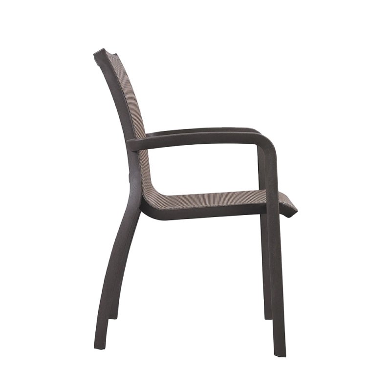 L'élégance et la pureté d'un fauteuil d'extérieur ultra confortable grâce à sa toile en textilène traitée antibactérien qui apporte souplesse et rigidité en même temps.