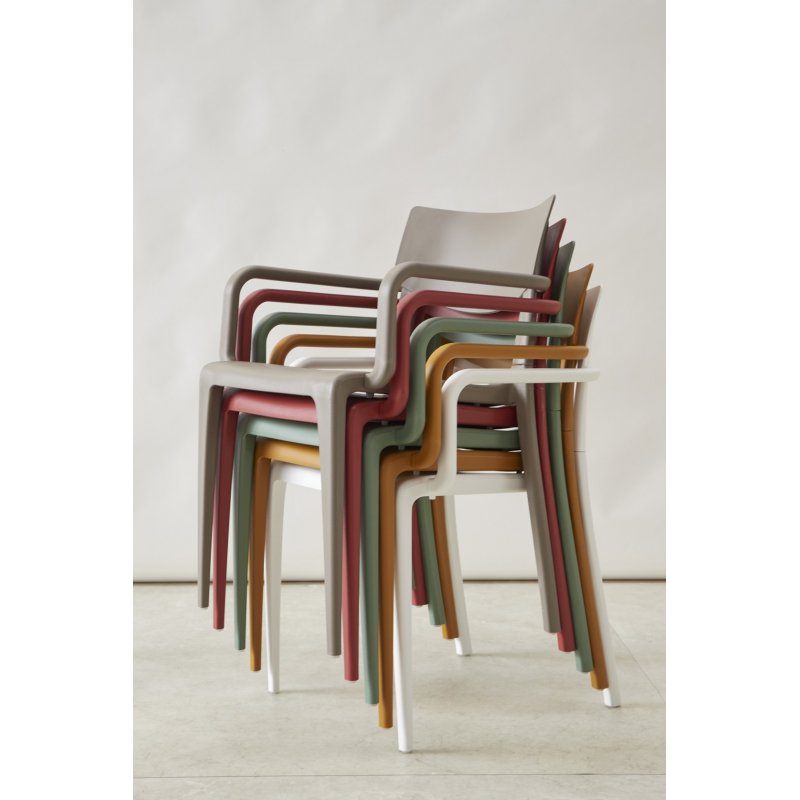 Le fauteuil Town d'Ezpeleta est fabriqué à partir d'une structure solide en polypropylène renforcé de fibre de verre, ce qui lui confère une résistance exceptionnelle à toutes les conditions météorologiques. Vous apprécierez la possibilité de personnaliser votre agencement pour donner une touche unique à votre décoration grâce à son design original et ses teintes rafraîchissantes. Son esthétique épurée et minimaliste lui permet de s'intégrer harmonieusement aussi bien à l'intérieur qu'à l'extérieur. De plus, jusqu'à 8 fauteuils peuvent être empilés, et il est entièrement recyclable.