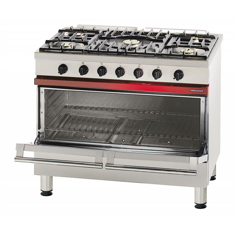 Le four spacieux présente des dimensions intérieures de L 900 - P 455 - H 305 mm et est équipé de brûleurs à flamme autostabilisée de 3, 5 kW, assurant un contrôle précis de la température grâce à un thermostat intégré et une sécurité par thermocouple.