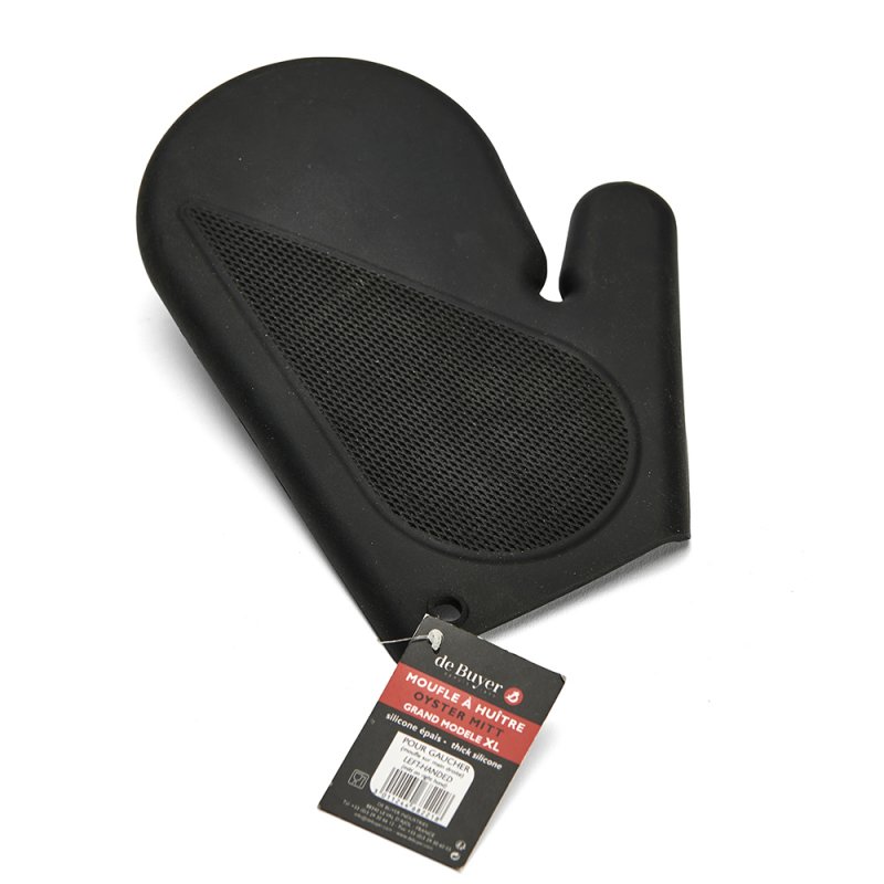 Cette moufle de protection pour gaucher est un accessoire essentiel pour les professionnels de la restauration travaillant avec des huîtres.