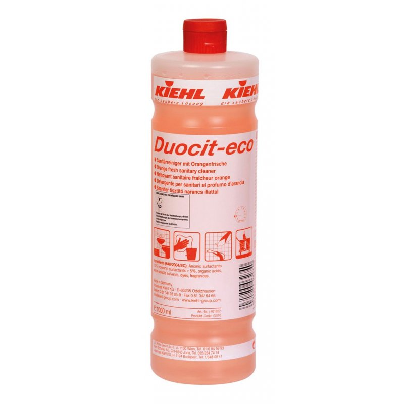 DUOCIT-ECO, nettoyant, détartrant, désodorisant Ecolabel acide fraîcheur orange qui permet d'éliminer les salissures calcaires.