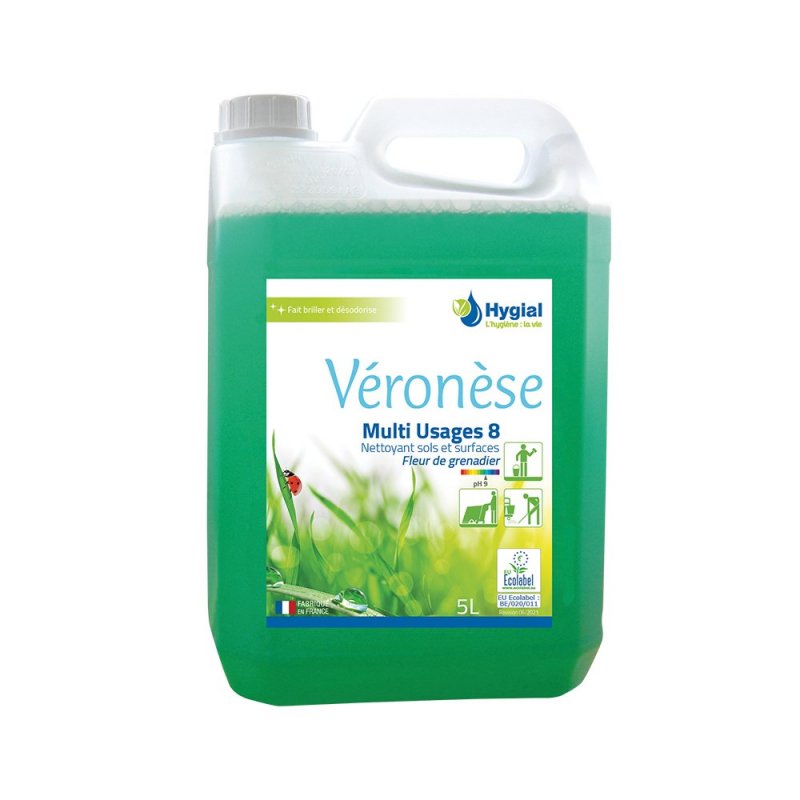 VERONESE MULTI-USAGES 8 est un nettoyant multi-usages concentré odorant Ecolabel multi-usages.