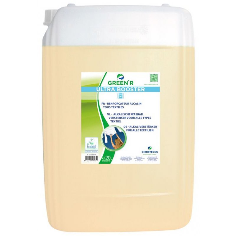 | Titre | Renforçateur alcalin tous textiles Ecolabel GREEN'R ULTRA BOOSTER pour dosage automatique - Bidon de 20L |