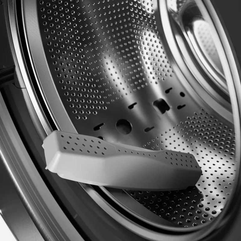 - Le tambour Active DrumTM est conçu pour empêcher les mouvements mécaniques d'endommager les textiles : le linge est dirigé vers le centre du tambour, là où le mouvement mécanique est atténué grâce aux aubes amovibles en forme de sablier qui répartissent mieux la charge au centre du tambour, évacuent et guident les plus gros résidus vers les extrémités du sablier.