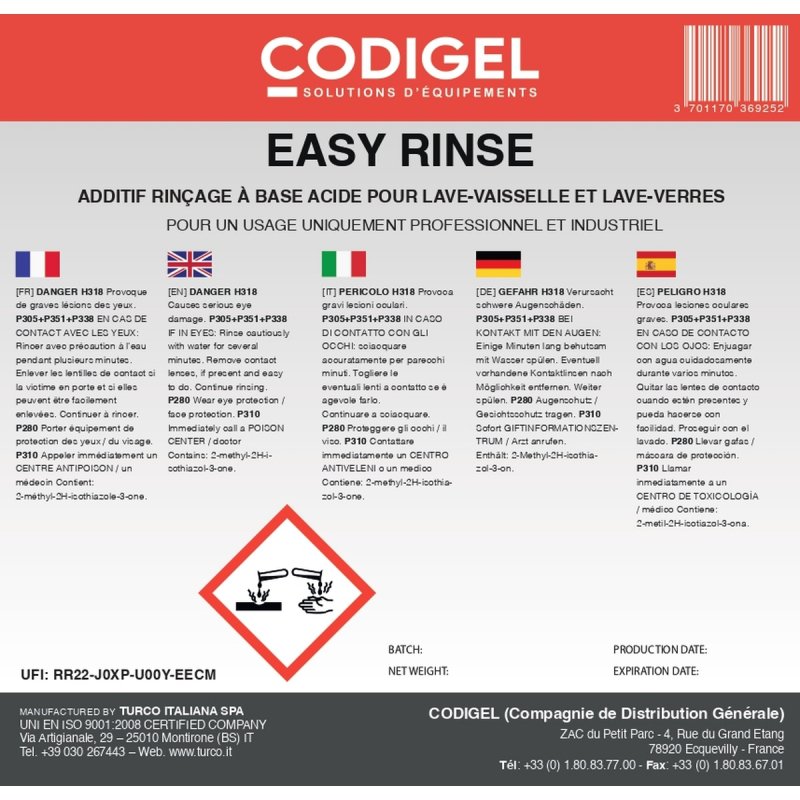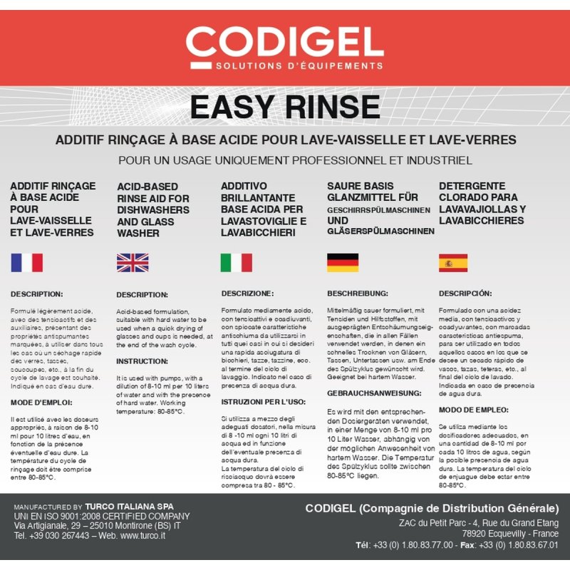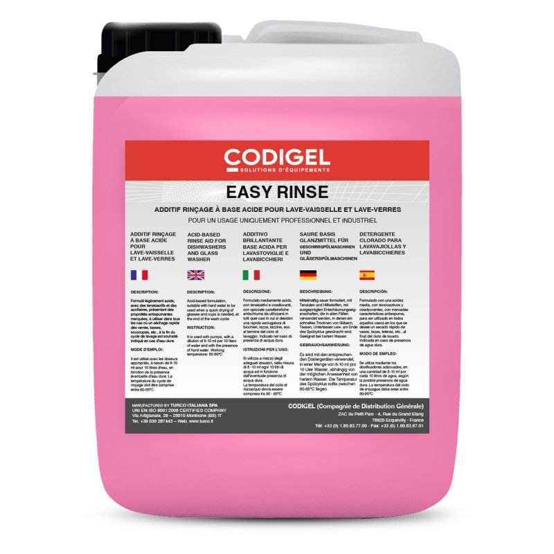 Elle est parfaitement adaptée aux lave-vaisselles et lave-verres professionnels. Son efficacité réside dans sa capacité à éliminer les résidus de détergent et à prévenir les dépôts calcaires, prolongeant ainsi la durée de vie de vos équipements. De plus, son action rapide permet d'optimiser le temps de lavage, augmentant ainsi la productivité de votre établissement.