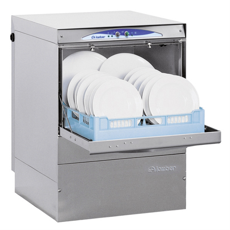 Le remplissage de la cuve se fait automatiquement. Le lave-vaisselle dispose d'un dispositif de sécurité à l’ouverture de la porte. Cet équipement professionnel est également équipé d'un doseur de produit pour le rinçage, d'un panneau de contrôle extractible, et de filtres en cuve en plastique intégrés. L’appareil est commutable en 230 V mono.