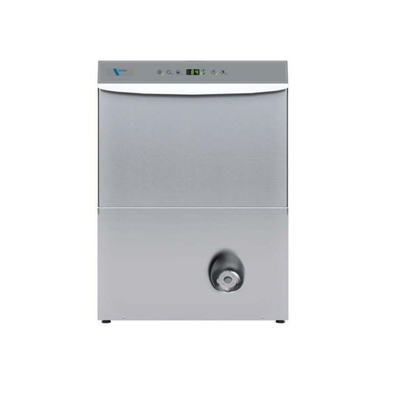 Lave-vaisselle professionnel équipé d'un surchauffeur atmosphérique de 5, 8L avec pompe de rinçage. Ce modèle frontal possède des bras de lavage et de rinçage en polypropylène, démontables sans outils. La commande électronique avec affichage digital inclut des fonctions d'auto-diagnostic et de démarrage doux "soft start", ainsi qu'un doseur de rinçage intégré, assurant un rinçage à 85 degrés. La construction en inox AISI 304 comprend le dessus, les côtés, la façade, la porte et la cuve, avec une porte à double paroi pour une meilleure isolation pour cet équipement professionnel.