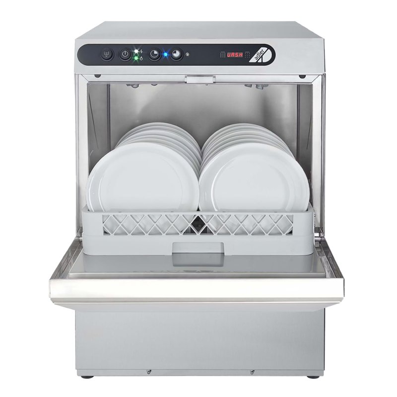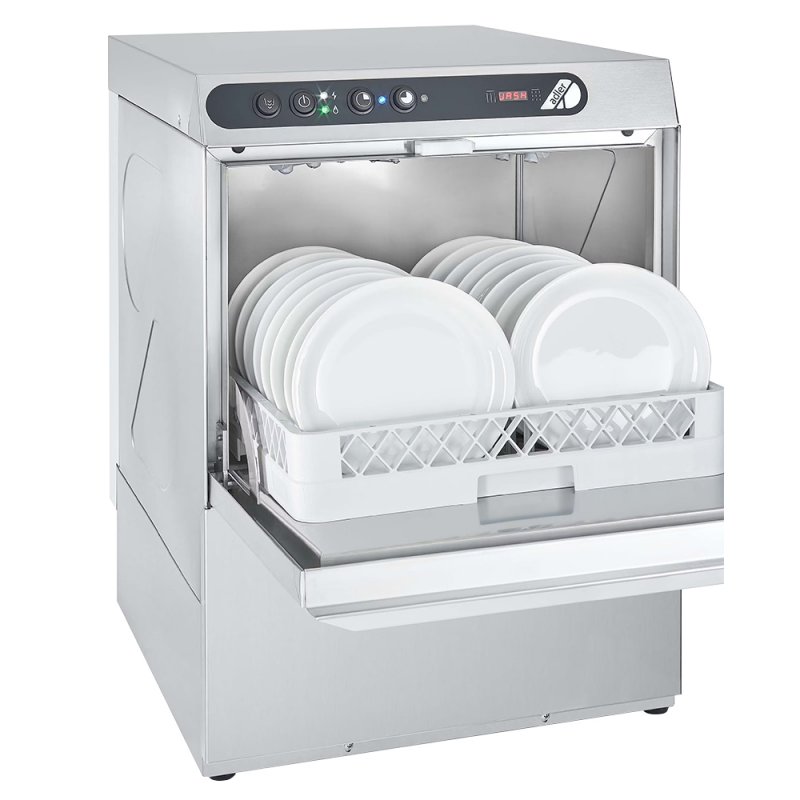 Il est équipé d'une pompe de vidange et d'un nouveau châssis embouti avec des charnières renforcées, assurant une longévité accrue. Son système d'arrêt du cycle en cas d'ouverture de la porte et son double système de filtration innovant garantissent une sécurité et une performance maximales. Les bras de lavage en composite et le doseur automatique de produit de rinçage optimisent chaque cycle de lavage, qui peut être réglé entre 1 et 3 minutes selon les besoins.