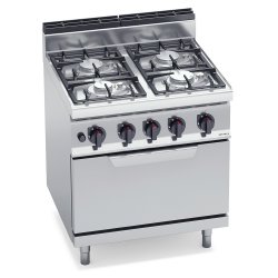 | Titre | Fourneau 4 feux vifs sur four gaz GN 2/1 monobloc 28 kW en 800 x 700 x 850 mm |