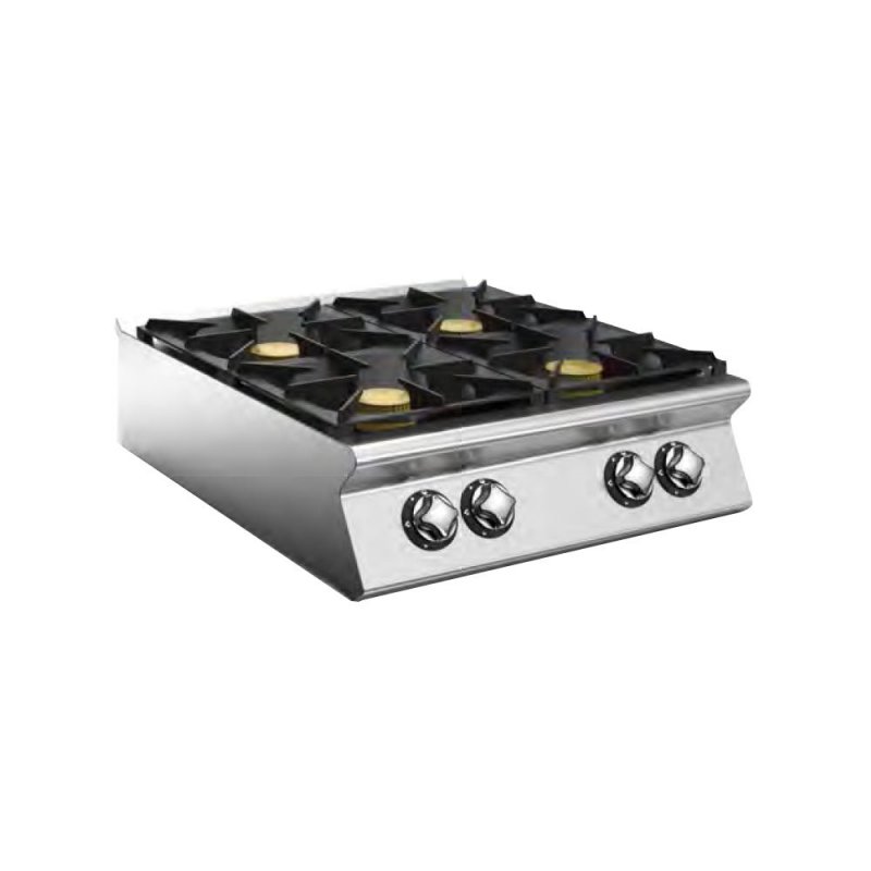 Ce plan de cuisson au gaz est fabriqué en acier inoxydable AISI 304 de haute qualité, garantissant une durabilité exceptionnelle. Il est équipé de 4 brûleurs principaux, offrant une puissance maximale de 6 kW sur 3 brûleurs et de 10 kW sur 1 brûleur. Vous pouvez régler la puissance de manière constante, de 1, 6 à 6 kW et de 2, 5 à 10 kW, grâce à des robinets de sécurité équipés de thermocouples.