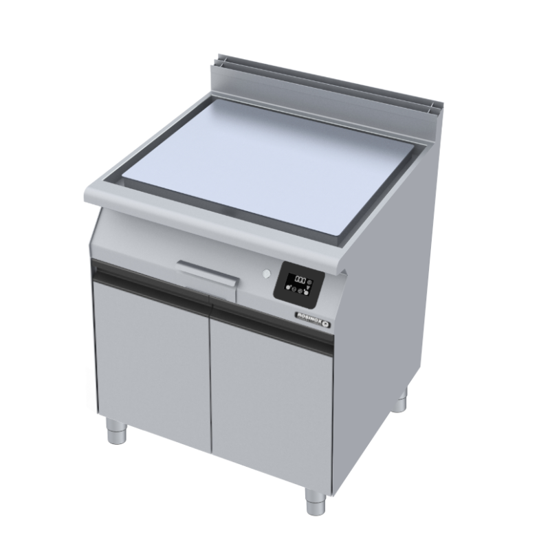 La plaque à nnacker Royal Chef Optima 800 sur placard fermé est une solution de cuisson professionnelle conçue pour les cuisines commerciales, notamment les restaurants, hôtels et autres établissements de restauration. Cette unité intègre une plaque de cuisson robuste pour snacker optimisant l'espace avec un placard fermé en dessous, permettant ainsi une utilisation efficace de l’espace de travail tout en offrant un espace de stockage supplémentaire.