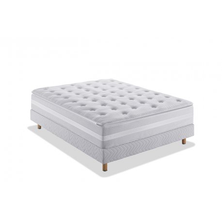 La pack comprend : 1 matelas Exclusive Prestige avec sur-matelas intégré + 1 sommier en tissu blanc (ou 2 si pack à Duo) + les pieds de lit (la tête de lit sur la photo n'est pas vendue avec).