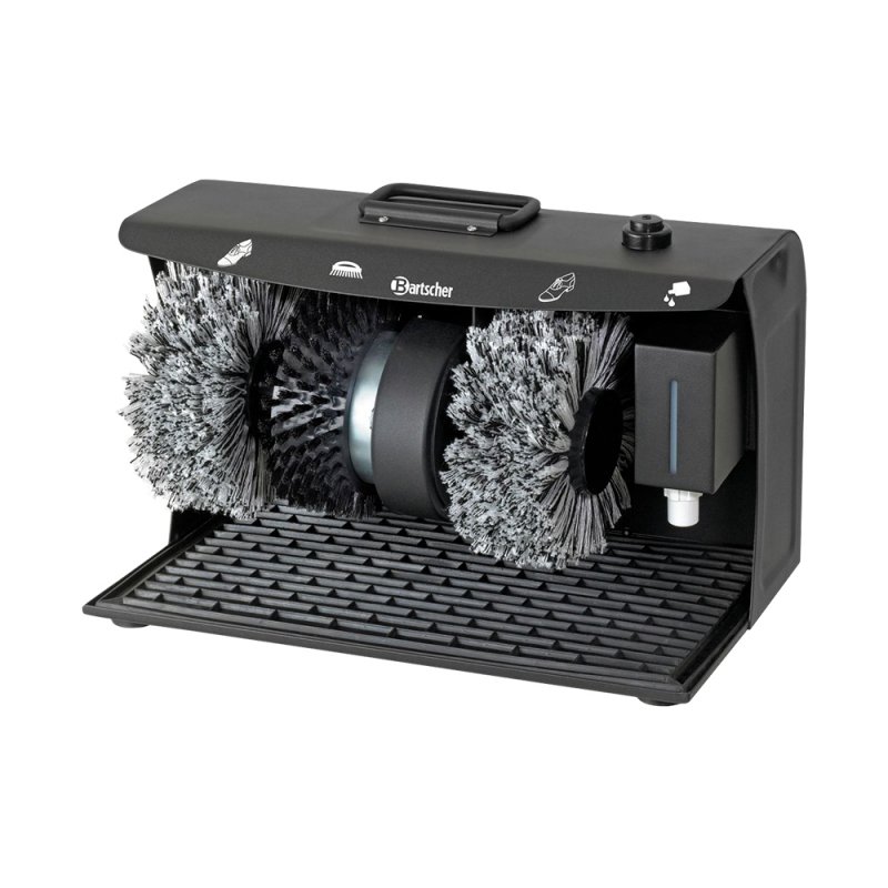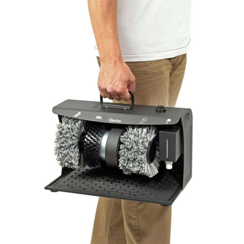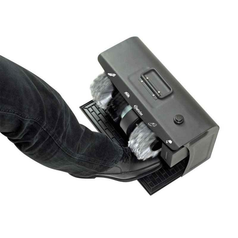 Cireuse à chaussures qui vous permet d'avoir des chaussures parfaitement propres sans effort grâce à la commande au pied (simple pression d'un bouton).