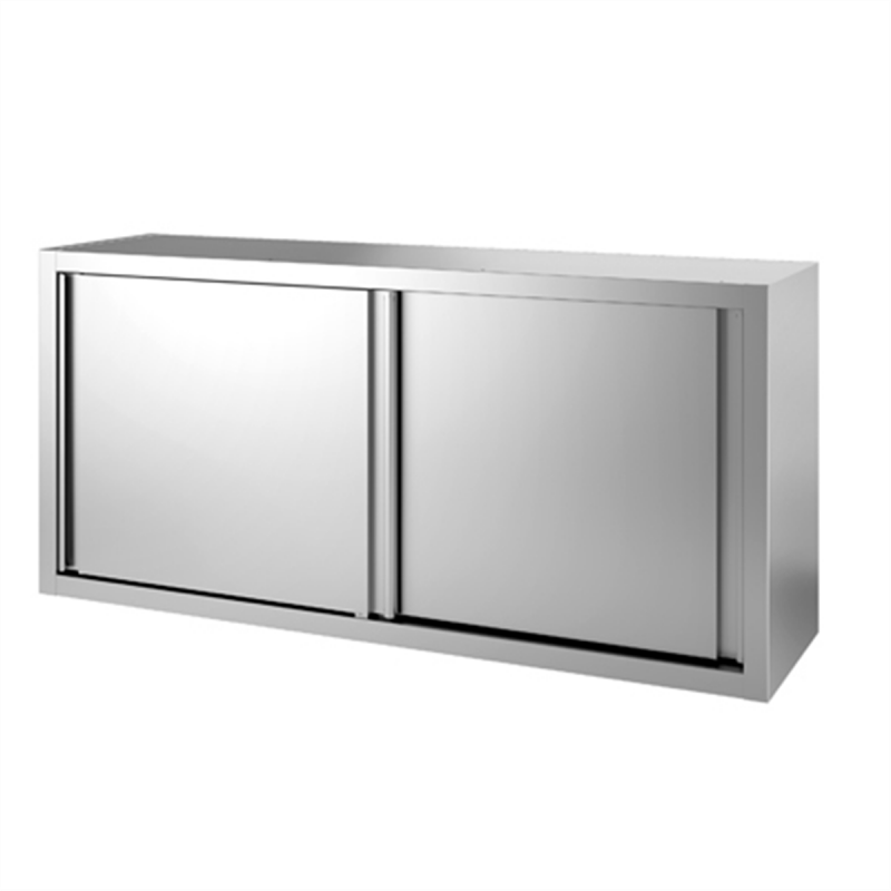 Cet équipement professionnel est équipé de portes coulissantes doublées, d'une barre de fixation murale, ainsi que d'une étagère intermédiaire ajustable.