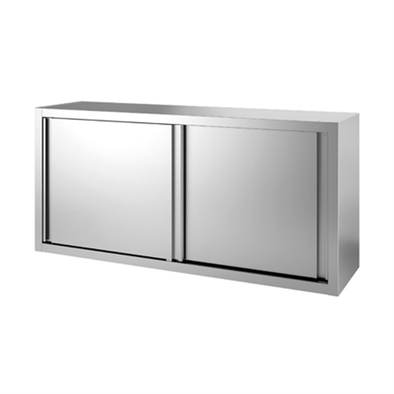 Cet équipement professionnel est équipé de portes coulissantes doublées, d'une barre de fixation murale, ainsi que d'une étagère intermédiaire ajustable.