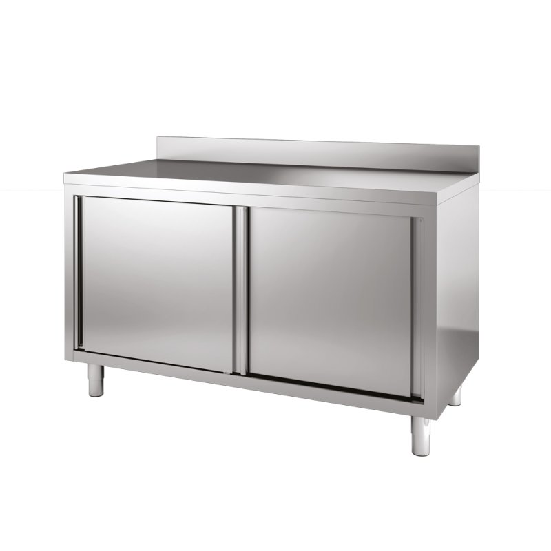 Le meuble bas adossé modèle B69018 est conçu pour optimiser l'espace de travail et le stockage dans les environnements de cuisine professionnels.