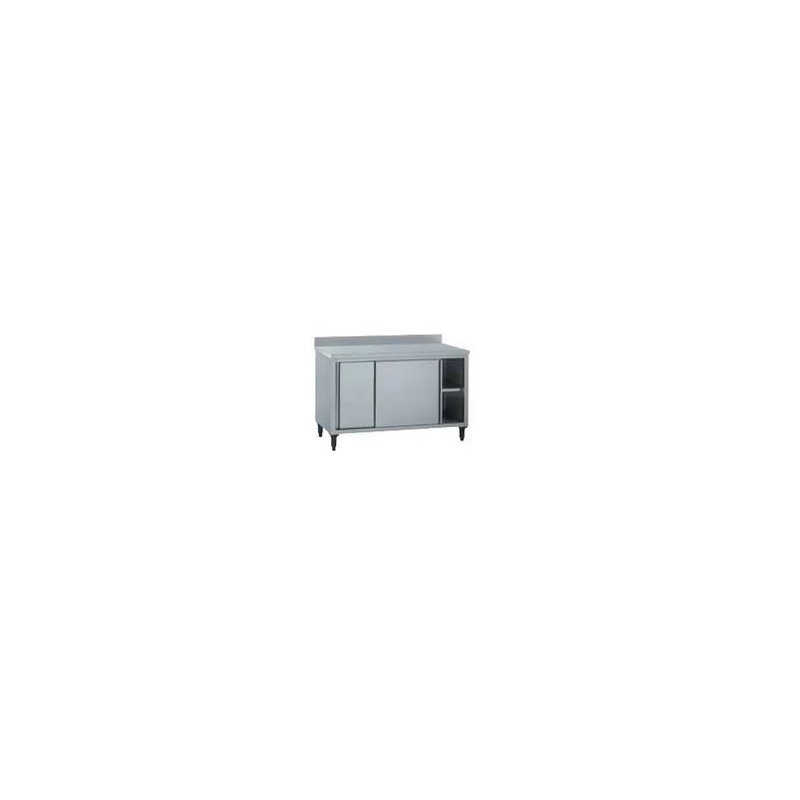 Le meuble neutre professionnel en acier inoxydable alimentaire présente une hauteur de 900 mm. Son dessus est doublé par un panneau stratifié hydrofuge et est équipé d'un dosseret plié de 100 mm de hauteur ainsi que d'un bandeau avant de 40 mm de hauteur. Cet équipement professionnel dispose d'une étagère intermédiaire réglable supportant jusqu'à 100 kg par mètre et de portes coulissantes doublées pour une meilleure robustesse et durabilité.
