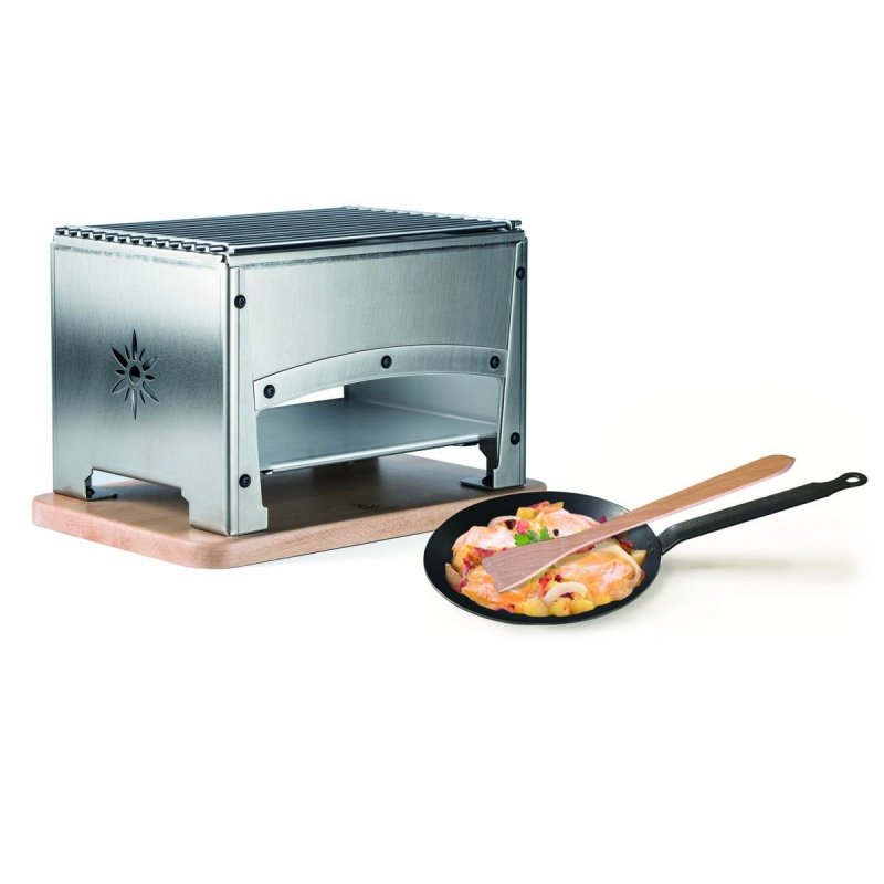Le Braséro - Kit reblochonnade est idéal pour vos reblochonnades et grillades en intérieur. De plus, il est doté de 2 côtés ouverts pour insérer le poêlon avec facilité !