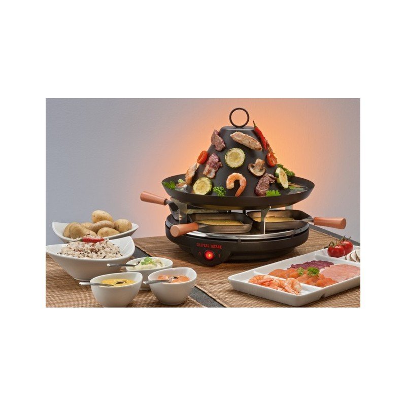 Savourez de délicieuses grillades dans la plus pure tradition et partagez des moments chaleureux en famille ou entre amis ! Grâce à sa forme unique, cet appareil permet de griller facilement des fines tranches de viande, de poisson, de légumes, ou même de fruits sur son chapeau conique équipé de piques. Un design original pour un appareil qui ne manquera pas de séduire vos hôtes.