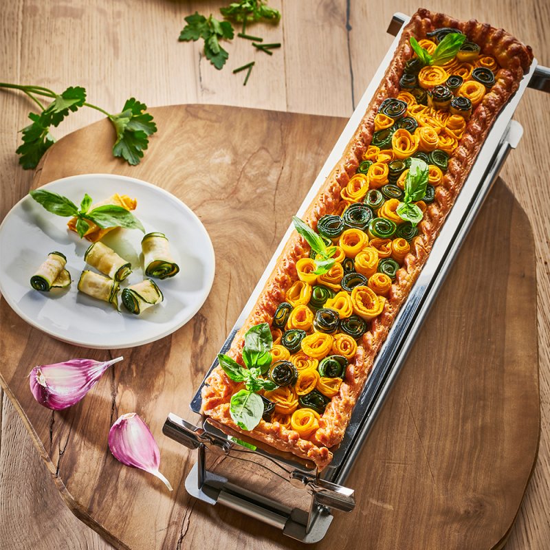 Le moule à pâté croûte pliable en inox perforé (35x7x7, 5 cm) est parfait pour les pâtés en croûte, mais aussi les pains moulés, pains spéciaux, saucissons briochés, pains d’épices ou encore cakes salés ou sucrés.