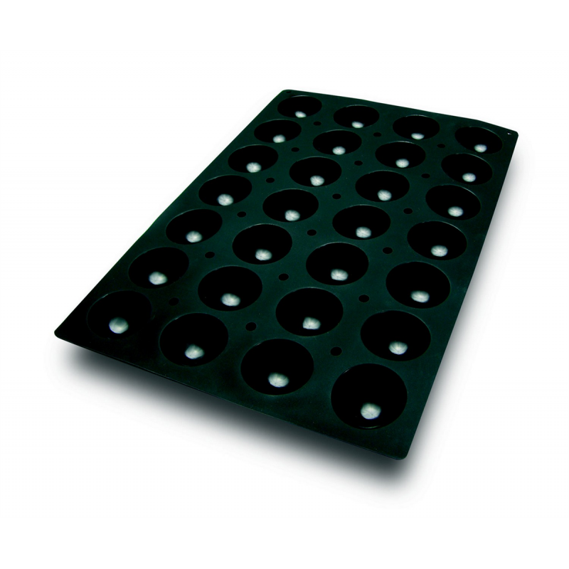 Le moule en silicone 600x400 mm, demi-sphère de 90 ml (Ø70x35 mm) avec 28 empreintes est idéal pour des créations culinaires...