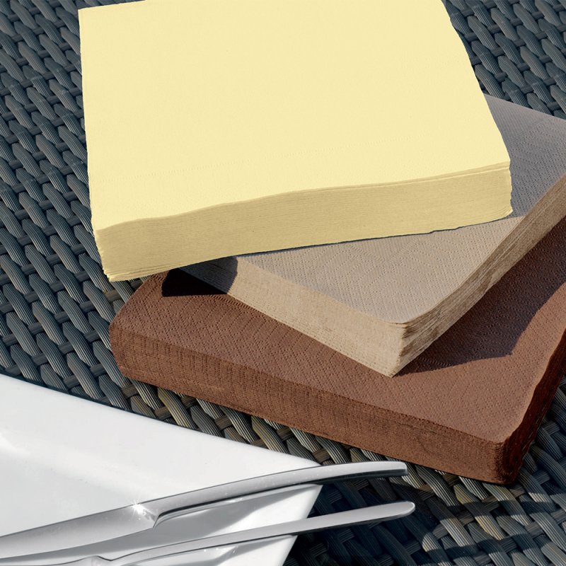 Nos serviettes en ouate 38x38 cm 2 plis champagne/vanille sont parfaitement adaptées aux professionnels de la restauration....