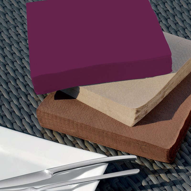| Titre | Serviette papier Airlaid 40x40 cm toucher textile aubergine |
