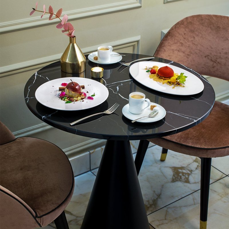 La collection Stella Cosmo de Villeroy & Boch est la garantie d’une présentation soignée. Son décor extrêmement élégant séduit par son esthétique et complète ainsi parfaitement le design chic au style affirmé de Stella Hotel. Déclaration de style en filigrane, Stella Cosmo offre une toile de fond culinaire sur laquelle de délicieux mets seront mis en valeur.