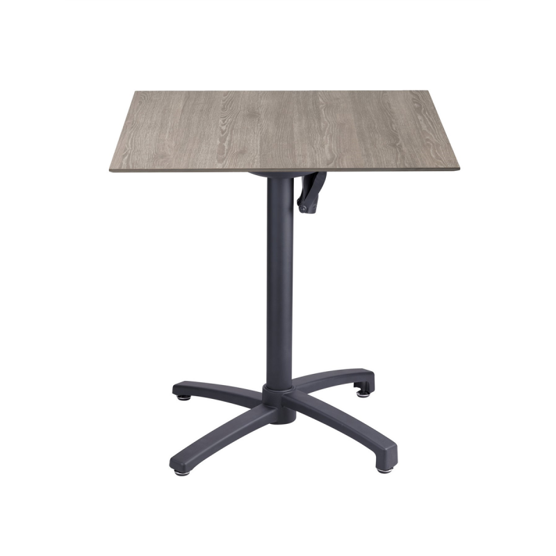 Ce pied de table X-ONE professionnel pour restaurant ou terrasse de café est facile à assembler et à transporter grâce à sa poignée de transport intégrée. Le mécanisme de pliage breveté se combine avec les pieds d'emboîtement spécialement conçus pour simplifier le stockage. La base est composée d'aluminium et intègre un mécanisme de pliage en résine renforcée de fibre de verre, doté d'un système de pliage breveté. Cette résine est renforcée par de la fibre de verre pour une solidité accrue. Un grand levier facile à manipuler est spécialement conçu pour une ouverture et une fermeture fluides, résistant à l'usure. Une poignée intérieure facilite le déplacement lorsque le dispositif est plié. Les quatre pieds de cet équipement professionnel sont équipés de niveleurs pour assurer une stabilité optimale, et ils sont lestés pour fournir un contrepoids lorsque pliés.