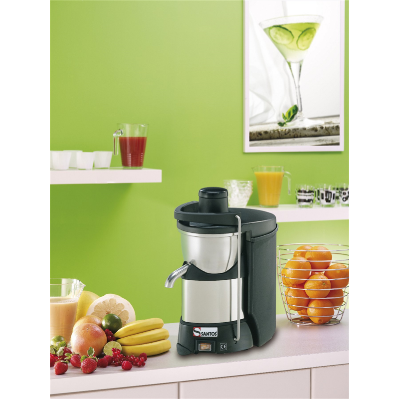 La centrifugeuse professionnelle "Santos Juicer" n°50, réputée pour son fonctionnement silencieux, est spécialement conçue pour extraire le pur jus et les vitamines essentielles de la plupart des fruits et légumes, en faisant ainsi un choix idéal pour les bars à jus et les adeptes d'une alimentation saine. Cette centrifugeuse professionnelle vous permet d'extraire le maximum de jus frais naturel en passant les fruits entiers, sans nécessité de les couper en petits morceaux, grâce à sa large goulotte d'introduction de 79, 5 mm de diamètre.