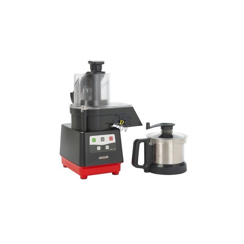 Ce combiné cutter mélangeur est idéal pour diverses tâches telles que le râpage, l'éminçage, la découpe en ondulé, en julienne et en dés. Un dispositif de sécurité stoppe automatiquement la lame lorsque la trémie d'alimentation est ouverte. Le cutter mélangeur est équipé d'un couvercle transparent en copolyester avec un racleur de cuve et une ouverture centrale pour ajouter des produits pendant le cycle. Son rotor à lames micro-dentées assure une découpe efficace.