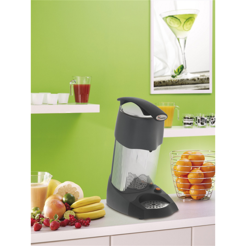 Cet équipement professionnel est fourni avec une ogive universelle, adaptée aux oranges, citrons, citrons verts et pamplemousses. Facile à utiliser, il démarre automatiquement lorsque l'on appuie sur le levier grâce à un système d'embrayage breveté. Le nettoyage est simplifié par des composants amovibles, tels que la cuve, l'ogive et la coupelle. Avec une hauteur de bec de 220 mm, ce modèle professionnel permet une distribution continue du jus directement dans un pichet ou un verre.