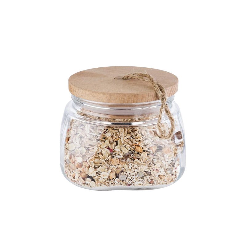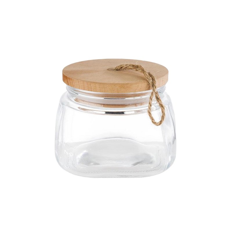 | Titre | Pot 1 L - Verre + couvercle bois hermétique - 14x14x11 cm |