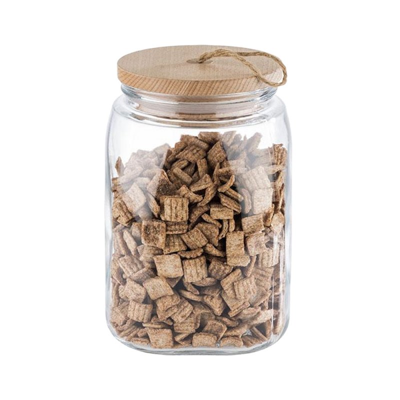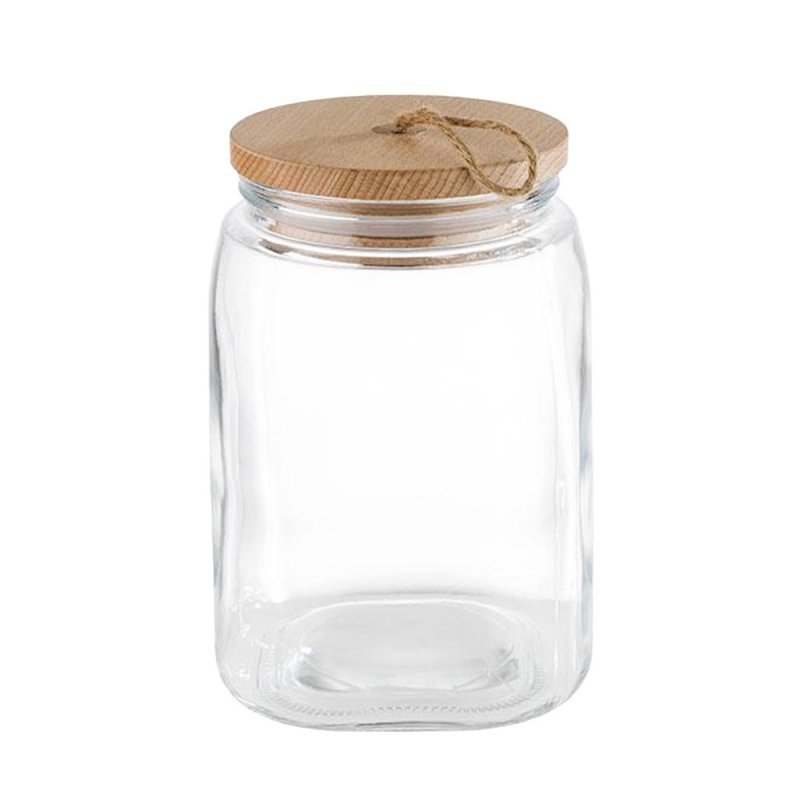 | Titre | Pot 2,5 L - Verre + couvercle bois hermétique - 14x14x21,5 cm |