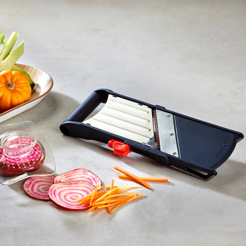 La Mandoline Komi julienne est idéale pour la réalisation de tranches, rondelles et Julienne. Elle dispose d'une lame horizontale intégrée et 2 peignes Julienne 2 et 4 mm.