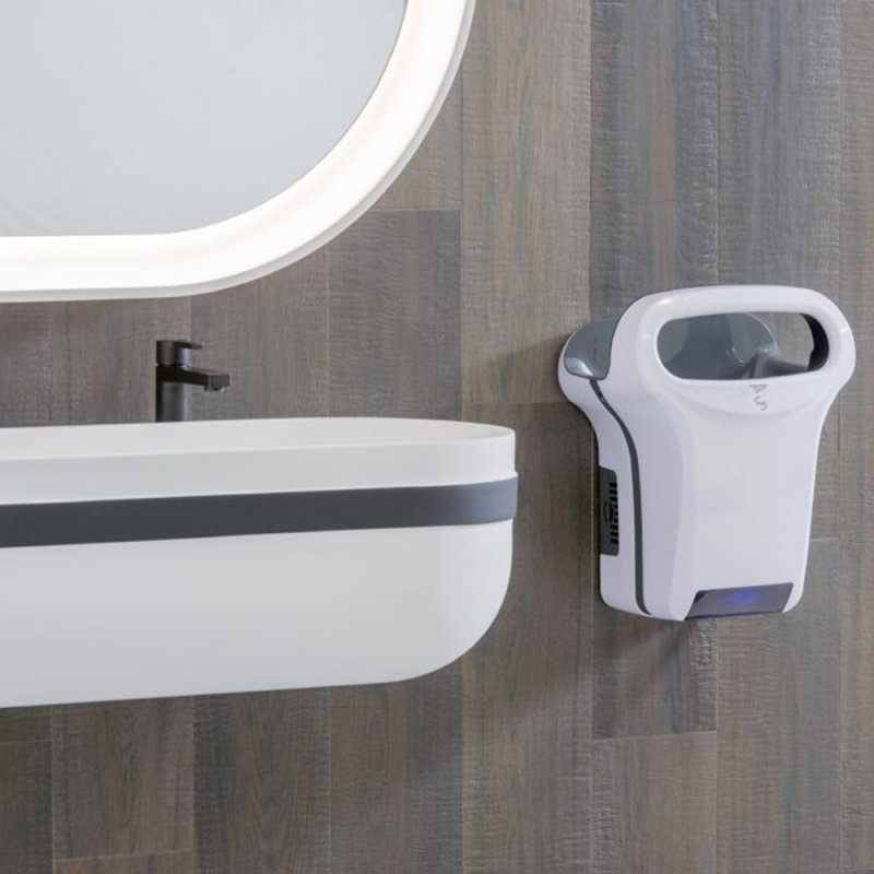 Sèche-Mains Exp'Air blanc automatique à air pulsé. Anti-vandalisme avec capot en aluminium et adapté aux personnes à mobilité...