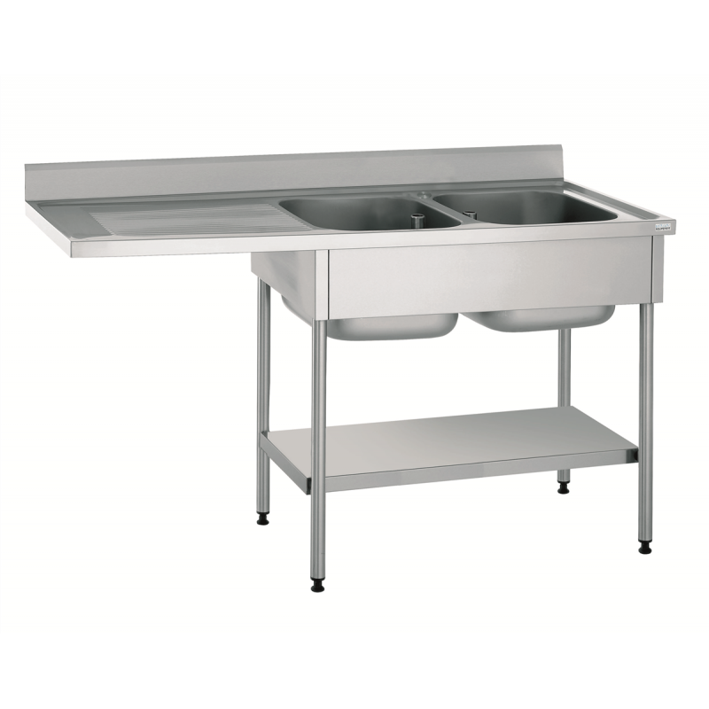 | Titre | Plonge adossée 2 bacs 400x500 mm - 1 égouttoir suspendu à gauche 1600x700x900 mm - sans robinet - avec étagère |