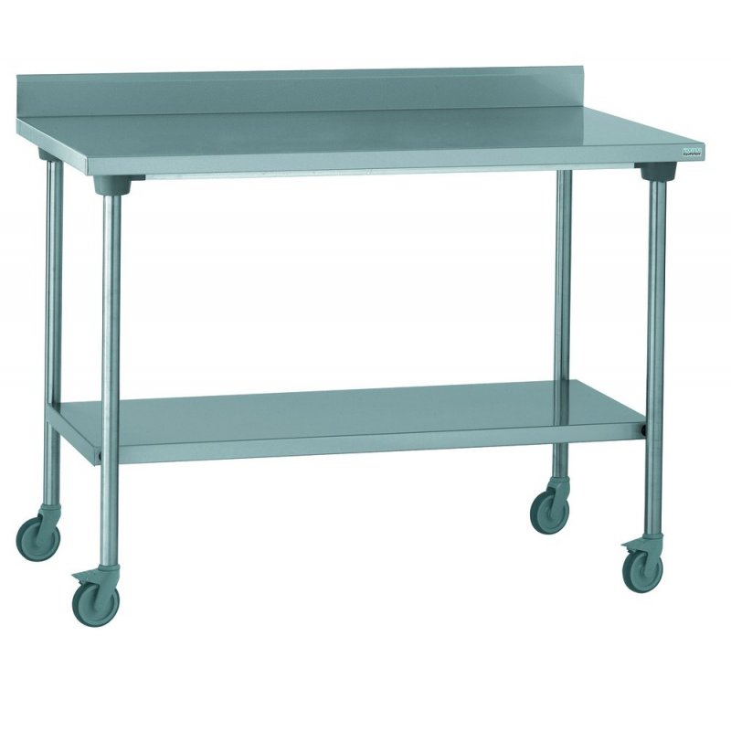 | Titre | Table adossée inox avec étagère - avec roulettes - 1200x700x900 mm |