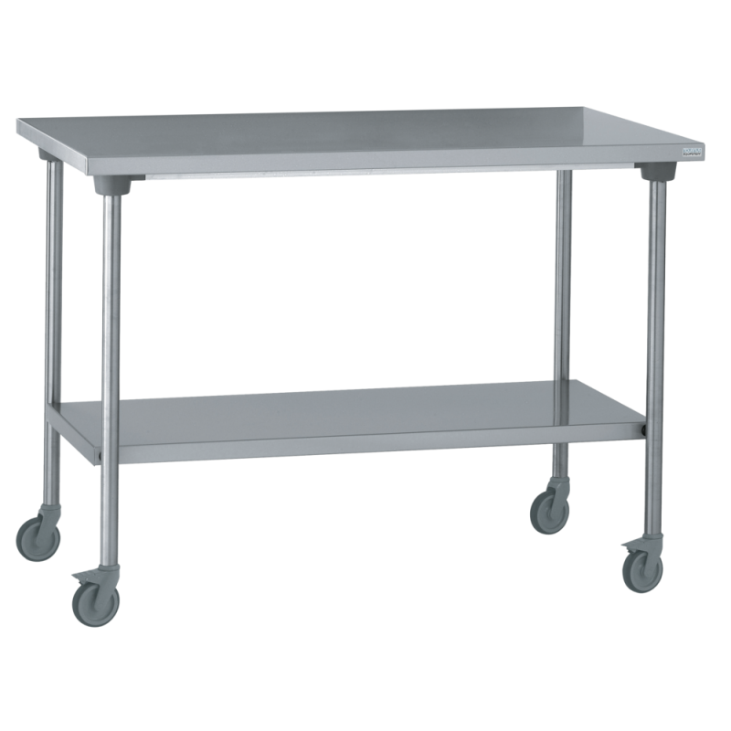 | Titre | Table centrale inox avec étagère - avec roulettes - 1400x700x900 mm |