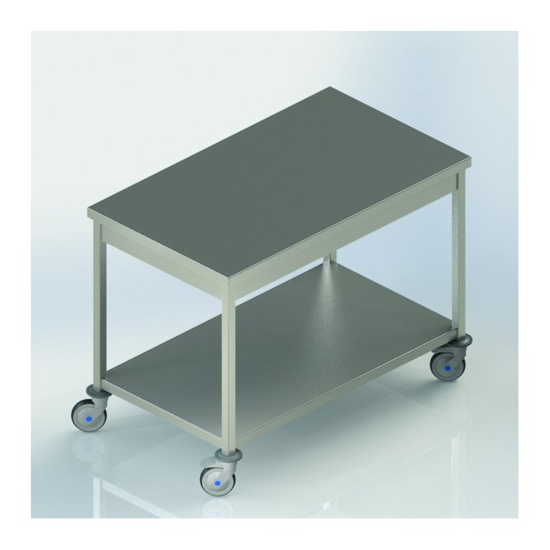 La table centrale mobile avec étagère est conçue pour optimiser l'espace et la fonctionnalité dans les environnements de cuisine professionnels. Fabriquée en acier inoxydable AISI 304, cette table assure une durabilité et une résistance optimales dans des conditions d'utilisation intensive. Son dessus en inox, doublé de mélaminé, offre une surface robuste et hygiénique pour la préparation des aliments. L'ensemble est monté sur des roulettes pivotantes en nylon inoxydable, facilitant ainsi sa mobilité.
