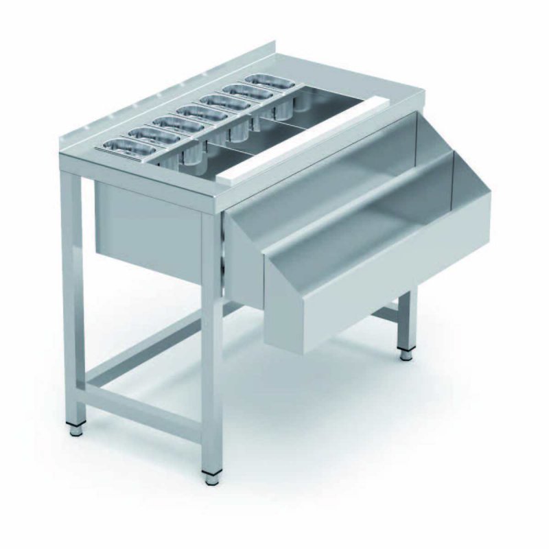 Vous découvrirez qu'elle est dotée de caractéristiques innovantes qui facilitent le travail des barmans. Sa cuve thermiquement isolée, équipée de polyuréthane injecté écologique, permet de maintenir les ingrédients à la température idéale. Le support frontal amovible pour bouteilles et la planche à découper en polyéthylène amovible ajoutent à sa praticité, rendant le nettoyage et l'organisation plus simples que jamais. Cette table est un atout majeur pour améliorer l'efficacité et la fluidité du service dans votre établissement.