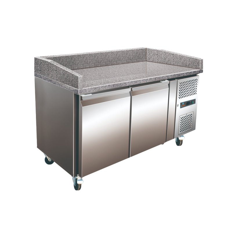 Meuble de préparation à pizza composé de 2 portes, il a une capacité de 428 litres pour une capacité de stockage importante.